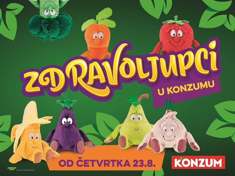 Kako bi dao doprinos u osvještavanju važnosti uvođenja većih količina voća i povrća u dnevnu prehranu te ih, posebno djeci, učinio primamljivijima, Konzum svojim kupcima donosi Zdravoljupce - novi program vjernosti u svim prodavaonicama u Hrvatskoj.