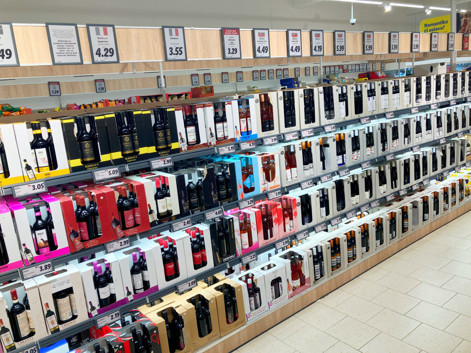 Za razliku od drugih zemalja, Lidl u Slovačkoj izlaže vina u transportnim kutijama po šest boca, u skladu sa diskontnom filozofijom i maksimalnom efikasnošću.
