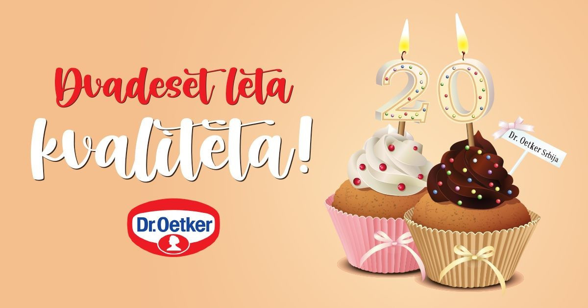 Na njihovoj Facebook stranici napisali su: Počastvovani i sa izuzetnim zadovoljstvom objavljujemo da naša kompanija, Dr. Oetker Srbija, slavi 20 godina svog postojanja! Koristimo ovu priliku da se zahvalimo vama, našim vernim potrošačima, bez kojih uspešno poslovanje koje traje godinama unazad ne bi bilo moguće. Uživajte u mesecu ljubavi i slatkim iznenađenjima koja smo za vas pripremili!
