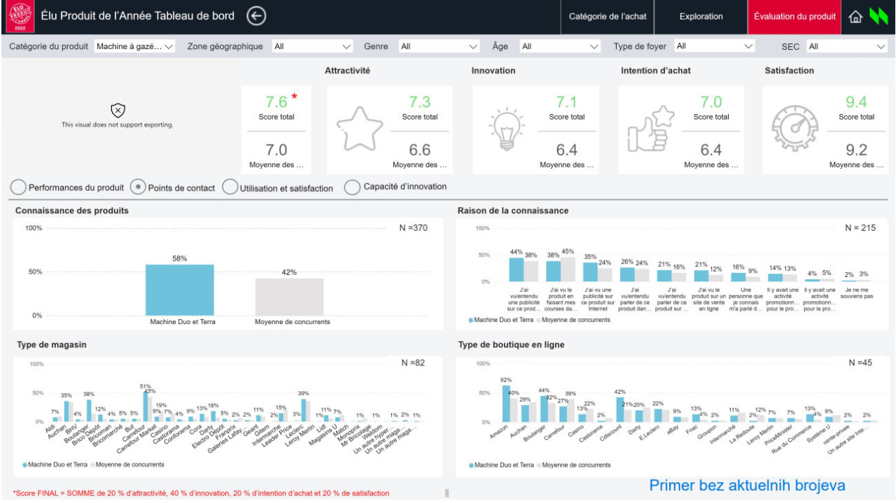 U samom Dashboard-u je lakše izdvojiti grupe, rezultate i kriterijume po polu, starosti i regionima, i na taj način videti preferencije, mišljenje potrošača ili kriterijume odvojeno, u različitim grafikonima i na druge načine.
