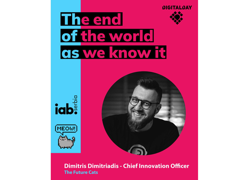 Dimitris Dimitriadis, Chief Innovation Officer, The Future Cats, koji će nam preneti detalje njegove vizije prema kojoj je budućnost medija svetla samo ako se oni usude da budu podvrgnuti suštinskim i hrabrim promenama. U novom digitalnom svetu opšte međupovezanosti i dalje ćemo želeti da pričamo i slušamo dobre priče, ali ćemo to činiti celim svojim telom i uz potpunu i neosetnu interakciju sa pravim ili virtuelnim okruženjem.