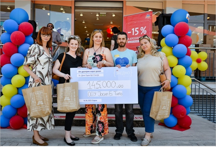 Ove godine dm slavi 10 godina postojanja na makedonskom tržištu. Uključujući novi objekat, dm u Makedoniji je prisutan sa 22 trgovine, od kojih je 13 u Skoplju i po jedna u Tetovu, Velesu, Kumanovu, Štipu, Bitolju, Strumici, Gostivaru, Ohridu i Strugi.