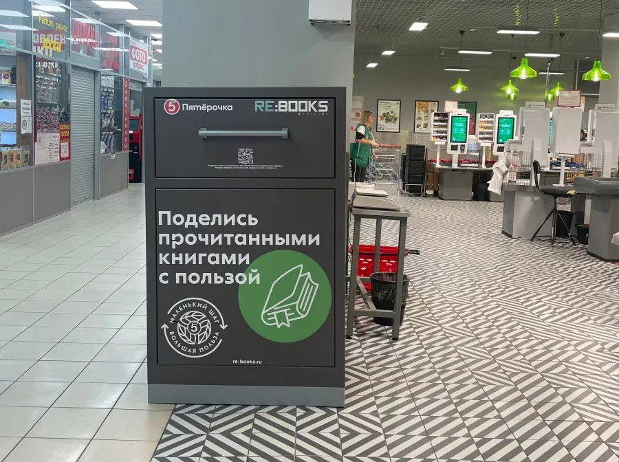 U šest prodavnica u Moskvi i Sankt Peterburgu instalirani su posebni kontejneri u koje gosti mogu odložiti nepotrebne knjige, oslobađajući svoje police za knjige i praveći mesta za nove knjige.