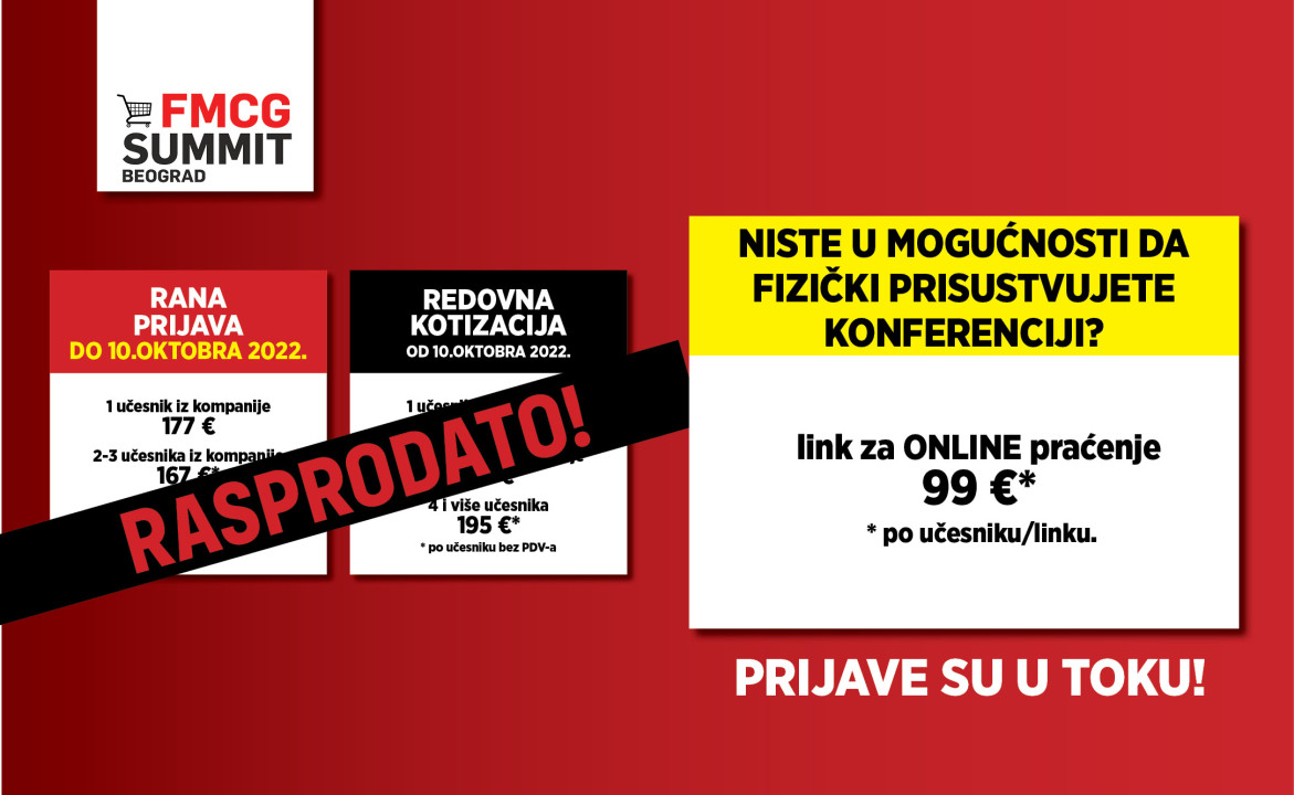 Obaveštavamo vas da je 9. FMCG Summit Beograd rasprodat!