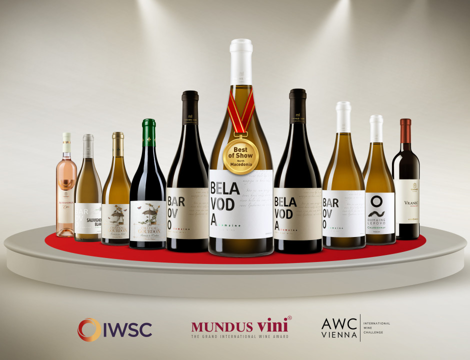 Na jednom od najvećih evropskih takmičenja Mundus Vini Summer Tasting, koje se održava u Nemačkoj, Bela Voda white 2021 osvojila je zlatnu medalju i specijalnu nagradu za najbolje vino iz S. Makedonije (Best of Show North Macedonia). Zlatne medalje dobila su i vina Terrasse au Soleil iz 2021 i Barovo red iz 2019, dok je Bela Voda red“ iz berbe 2019 nagrađena srebrnom medaljom.