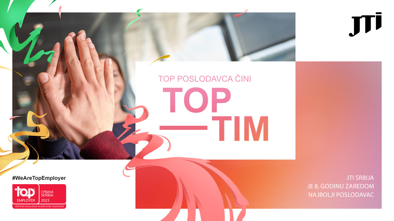 Upravo zbog toga, JTI je, osmu godinu zaredom, dobitnik Top Employer sertifikata, prestižnog priznanja namenjenog kompanijama koje su pokazale izuzetne rezultate kada se radi o obezbeđivanju najboljih uslova za rad i podsticanju razvoja talenata na svim nivoima.