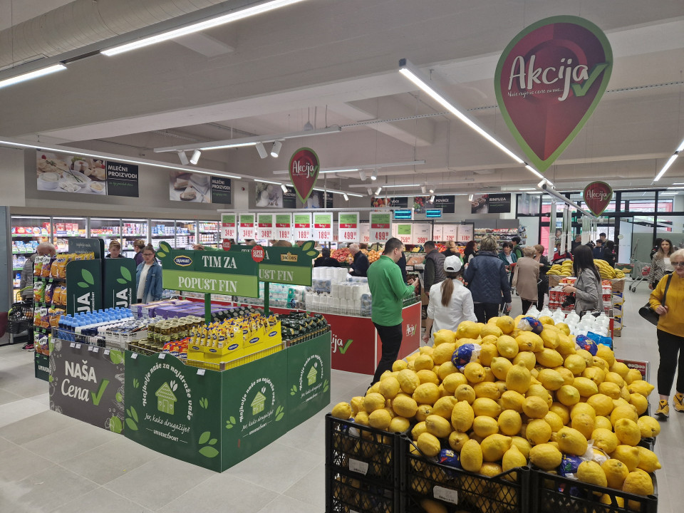 Novootvoreni objekat se prostire na skoro 1500 kvadrata prodajnog prostora, gde je raspoređeno oko 9500 artikala iz različitih kategorija. Asortiman je pripreman tako da odgovori na svakodnevne potrebe potrošača, ali i na sve složenije zahteve tržišta, pa tako možemo reći da u novom objektu Užičani mogu da pronađu sve što im treba na jednom mestu, saopštio je trgovac.