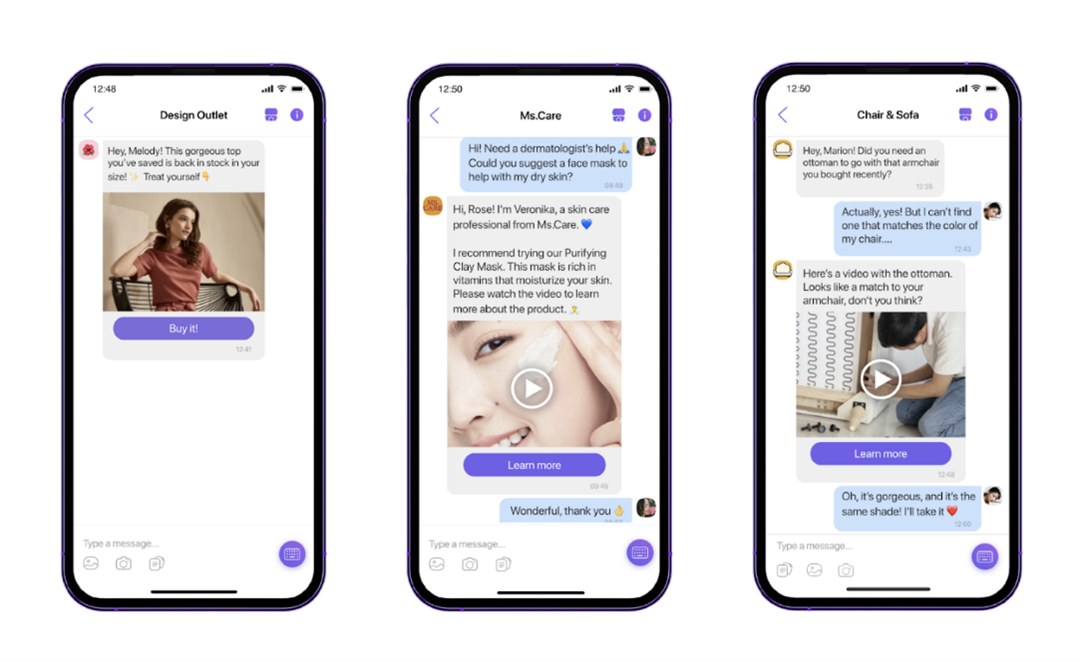 Kako se nastavlja evolucija mesindžera, tako raste i njihova sposobnost da uklope vizuelni sadržaj i da tako poboljšaju celokupno korisničko iskustvo. To je otvorilo vrata marketing menadžerima da upotrebljavaju te platforme za unapređenje komunikacije brenda i kupca – sada brendovi mogu da dopru do kupaca tamo gde su oni najaktivniji. Personalizacija i kreativnost su ključ – kompanije koriste uvide sakupljene iz podataka kako bi stvorili sadržaj tačno krojen po meri pojedinca i njegovih afiniteteta, onaj koji će kod njega snažno odjeknuti i zaokupiti mu pažnju. Primeri inventivnih marketinških strategija uključuju brendirane stikere, atraktivne video snimke i interaktivne Objektive proširene stvarnosti (eng: AR lenses).