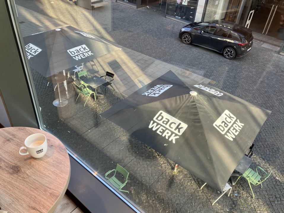 Mestna restavracija BackWerk poudarja svojo vlogo, ki je taka, da so nekje med pekarno in trgovino z živili s sedežem v slogu kavarne, tako v notranjosti kot zunaj v peš coni.