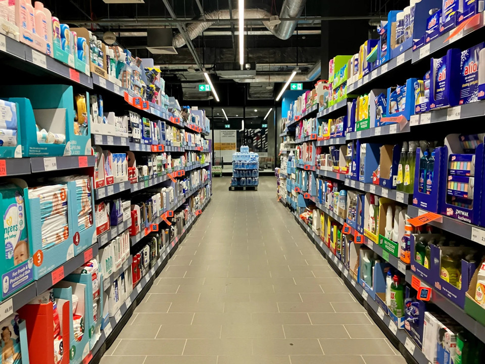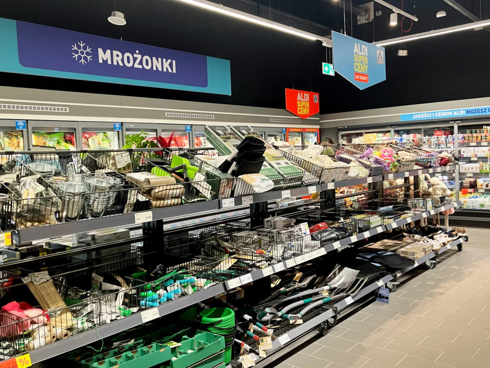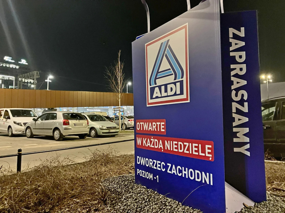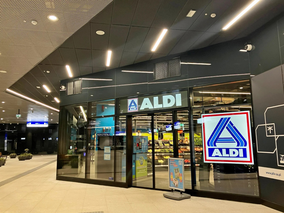 600 m² velika trgovina Aldi v formatu Compact 2.0 na postaji Warszawa Zachodnia se nahaja eno raven pod peronom, neposredno v coni gibanja potnikov.