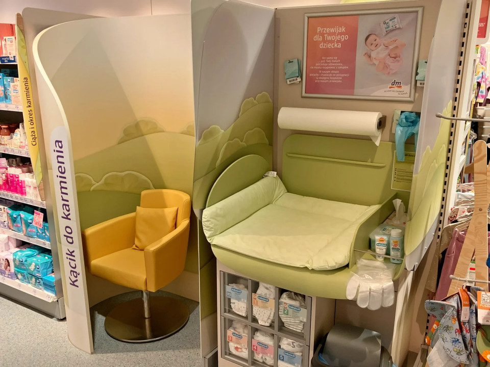 Z dojilnim kotičkom in integrirano previjalno postajo si v dm prizadevajo povečati privlačnost za mlade družine.