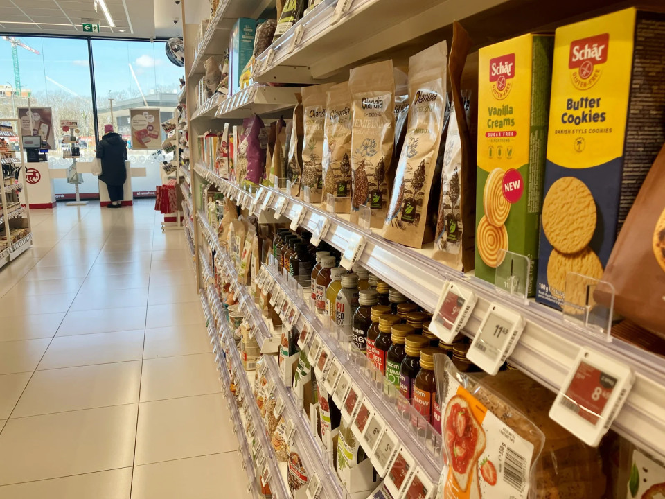 Tudi v Rossmannu so živila, osredotočena na zdravje, postavljena vzdolž stene na poti do blagajne, zaradi česar je kategorija vidna praktično vsem strankam. Tako kot v drogerijah dm je integrirana v glavno nakupovalno pot in se ne obravnava kot nišni dodatek.