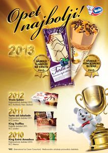 Mednarodno združenje proizvajalcev sladoleda (IICC) je na svoji redni letni konferenci na Norveškem družbi Ledo d.d. podelilo prestižno nagrado za najboljši sladoled na svetu in najboljše poslovne rešitve. Prestižne nagrade so v imenu podjetja prejeli predsednik uprave Tomislav Kitonić in direktor trženja ter razvoja Dario Vrabec.
