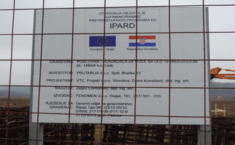 Izgradnjo hladilnice bodo delno financirali iz IPARD-ovega programa Evropske unije.Frutaria, podjetje v hrvaško-ruskem lastništvu, se ukvarja z odkupom, skladiščenjem in prodajo sadja in zelenjave ter polnjenjem svežega naravnega soka iz sadja.