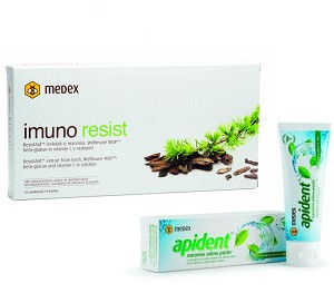Prvi izdelek je prenovljena naravna zobna pasa Apident, ki vsebuje aktivni sestavini propolis in olje čajevca, ki ohranjata zdrave zobe in dlesni ter skrbita za popolno ustno higieno. Fluor v obliki natrijevega monofluoro fosfata naredi zobe odpornejše in varuje pred nastankom kariesa in zobnih oblog. Izdelana je na osnovi večletnih izkušenj in tradicionalnega znanja o čebeljih pridelkih in zeliščih.Medexovi novosti - Imuno resist in Apident