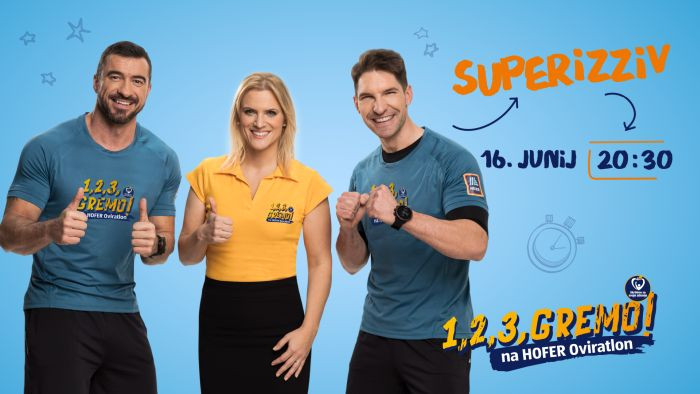 Ekipa 1, 2, 3, GREMO! je pred zadnjim Superizzivom. Jutri, v torek, 16. junija, bodo ob 20.30 pod strokovnim vodstvom ambasadorjev projekta - nutricistke Mojce Cepuš, osebnega trenerja Jana Kovačiča ter televizijskega voditelja in športnega navdušenca Marka Potrča – na Facebooku in Instagramu izpolnili še zadnji letošnji izziv.