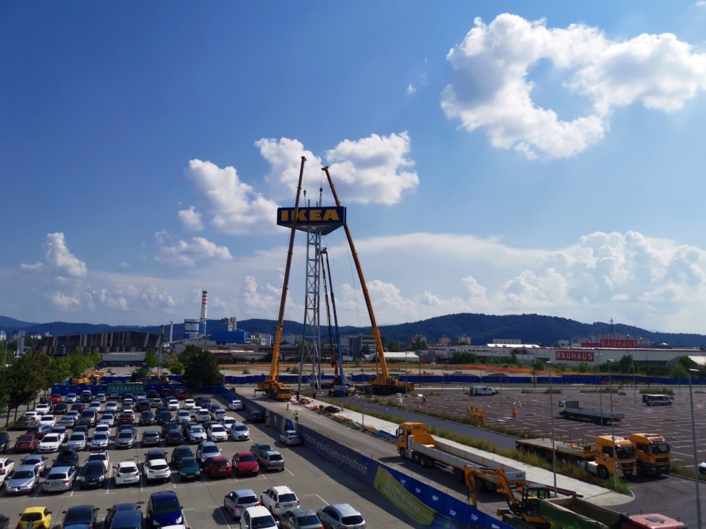 Označevalni stolp Ikee v Ljubljani že postavljen