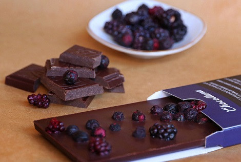Vsaka ima 76-% delež kakava. Prva je prava črna čokolada, ostale tri so sadne kombinacije: z domačimi gozdnimi jagodami, organskimi malinami iz Arlija ter organskimi borovnicami in divjo robido.