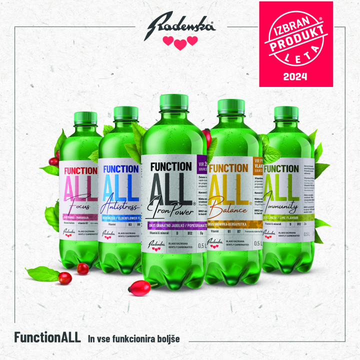 Inovativna linija funkcionalnih pijač FunctionALL iz Radenske je bogatejša za dva izdelka: »Iron Power« z dodanim železom, ki prispeva k zmanjševanju utrujenosti, z okusom granatnega jabolka, ter »Balance«, ki z dodanimi prehranskimi vlakninami na osvežujoč način pripomore k večjemu vnosu prehranskih vlaknin v telo, z okusom grenivke in bergamotke. Novosti, ki sta plod nenehnega razvoja in zaveze trajnosti, ponujata odgovor na tempo sodobnega življenja, v katerem potrošniki poleg osvežitve in odličnega okusa vse pogosteje zahtevajo tudi pozitivne učinke za svoje počutje.