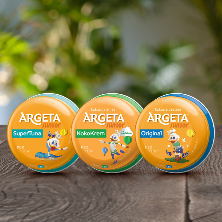 Argeta Junior je omiljen brend dece širom Evrope zbog toga što spaja korisno sa prijatnim, učenje sa zabavom. Svaki Argeta Junior namaz se pravi od visoko kvalitetnih komada pilećih grudi ili najfinijih fileta žutorepe tune. Uz dodate prirodne začine, biljna ulja, i pavlaku u nekim ukusima, Argeta Junior namazi su super ukusni, blagi i lako mazivi, objašnjavaju iz kompanije.