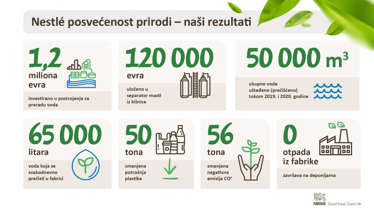 Ona je dodaja i da je Nestlé fabrika u Surčinu prvi pogon u Srbiji koji je prestao da odlaže otpad na deponije, postizanjem ambicioznog Zero Waste to Landfill cilja, što znači da ni jedan gram otpada iz fabrike ne završava na deponijama.