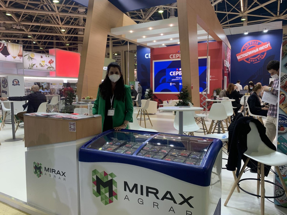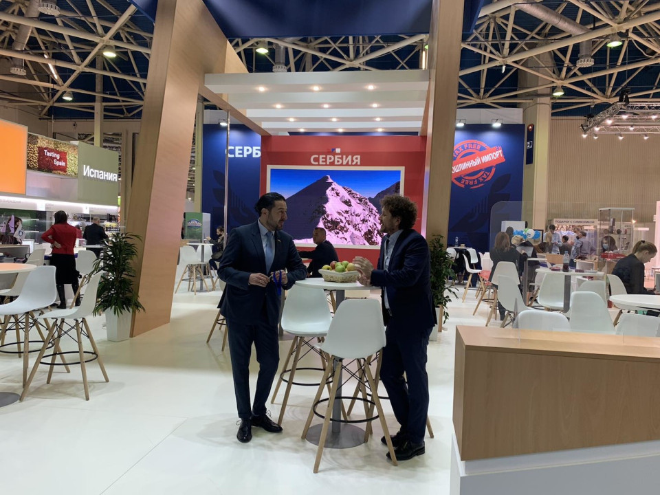 Ova najveća izložba prehrambene industrije u Rusiji i regionu održava se od 12. do 16. aprila, a u okviru Nacionalnog paviljona, u organizaciji Privredne komore Srbije (PKS) i Razvojne agencije Srbije (RAS), svoju ponudu i izvozni potencijal promoviše 11 domaćih kompanija.