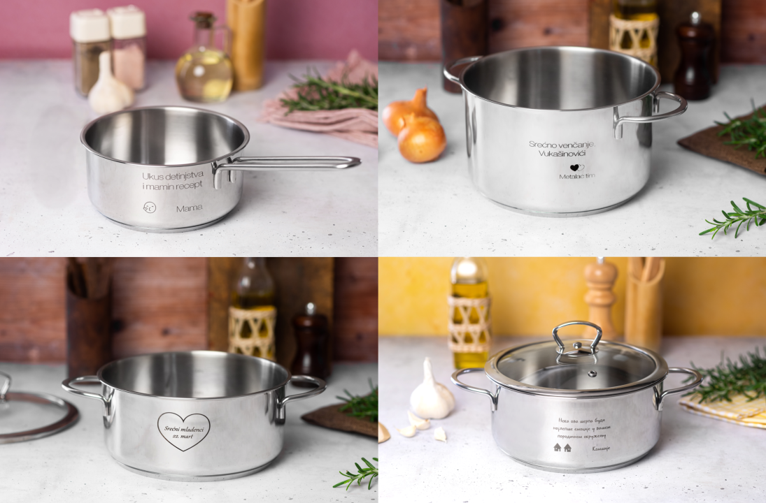 U želji da vam pomognemo da izrazite svoju ljubav, zahvalnost i pažnju na najposebniji način, kreirali smo personalizovan set inox posuđa Kulinaria 3/1 sa porukom! Bez obzira da li je u pitanju rođendan, godišnjica, venčanje, jubilej ili neka druga prilika, mi vam nudimo jedinstven poklon koji će vas izdvojiti od drugih, kažu iz Metalca.