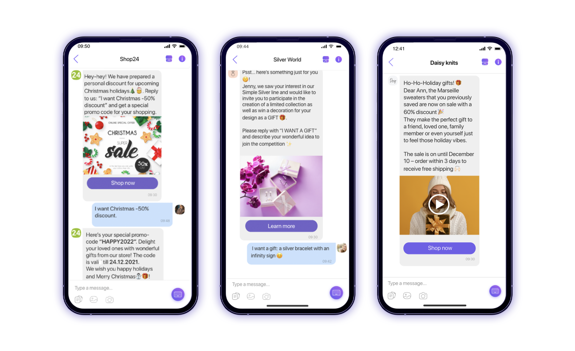 S obzirom na to da se 89 posto kupaca oslanja na mobilne uređaje kako bi videli ocene i komentare za određeni biznis, ključno je za brendove da tokom sezone praznika budu u što većoj meri prisutni na mobilnim uređajima svojih kupaca. Jedan od najefikasnijih načina za povezivanje sa mušterijama putem mobilnih telefona jesu čet aplikacije, one na kojima ljudi obično komuniciraju sa porodicom i prijateljima. Aplikacije za razmenu poruka pružaju pregršt prilika da biznisi predstave svoje proizvode, ponude korisničku podršku i uvećaju prodaju tokom praznika.