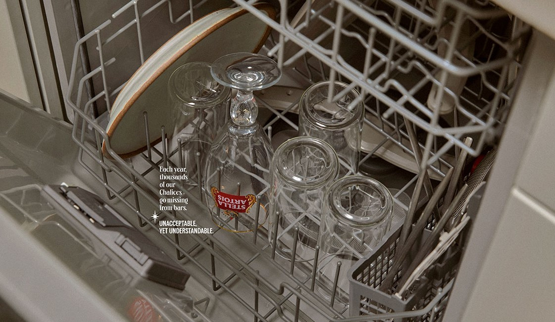 Reklama u okviru kampanje prikazuje čaše kao deo porodice, izložene sa ostalim posuđem, oprane u mašini za pranje sudova i obmotane u foliju radi selidbe.